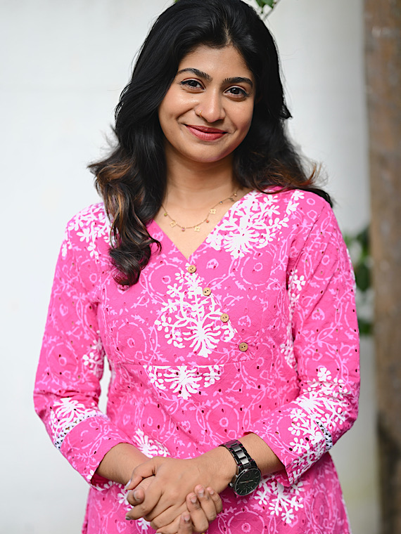 BLOCK PRINTED HAKOBA SLITTED TOP WITH LINING ,LACE DETAILING ON SLEEVE HEM ,V NECK PATTERN SHOW BOTTONS ON YOKE ,COMFORTABLE CASUAL WEAR