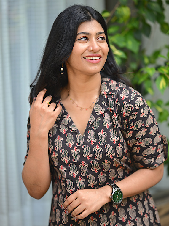 Cotton AJRAKH Co ord Set , Aline pattern with side pockets without lining, straight bottom..
